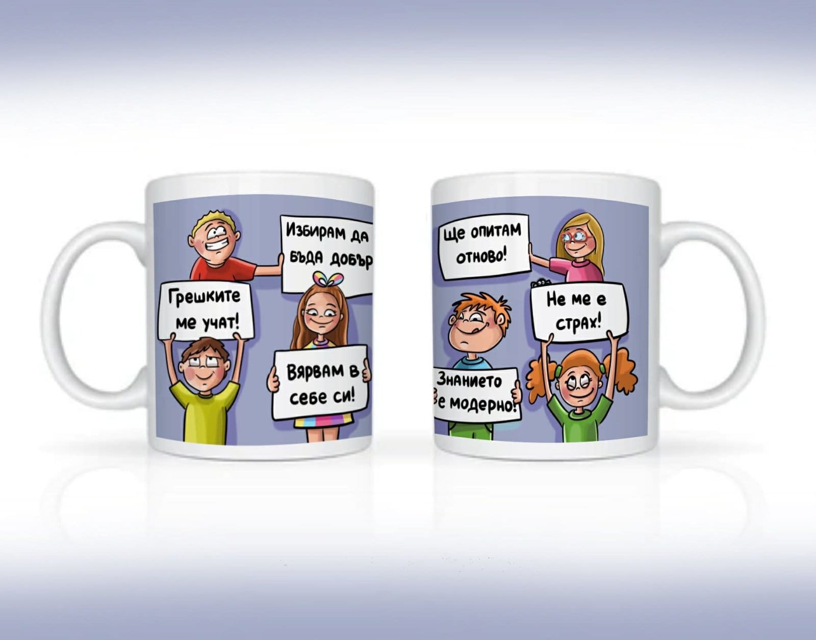 Специалната чашка с героите от „Училищни истории“ е създадена за всички деца (и пораснали деца), които обичат позитивните послания, забавните персонажи и уроците, които остават в сърцето.